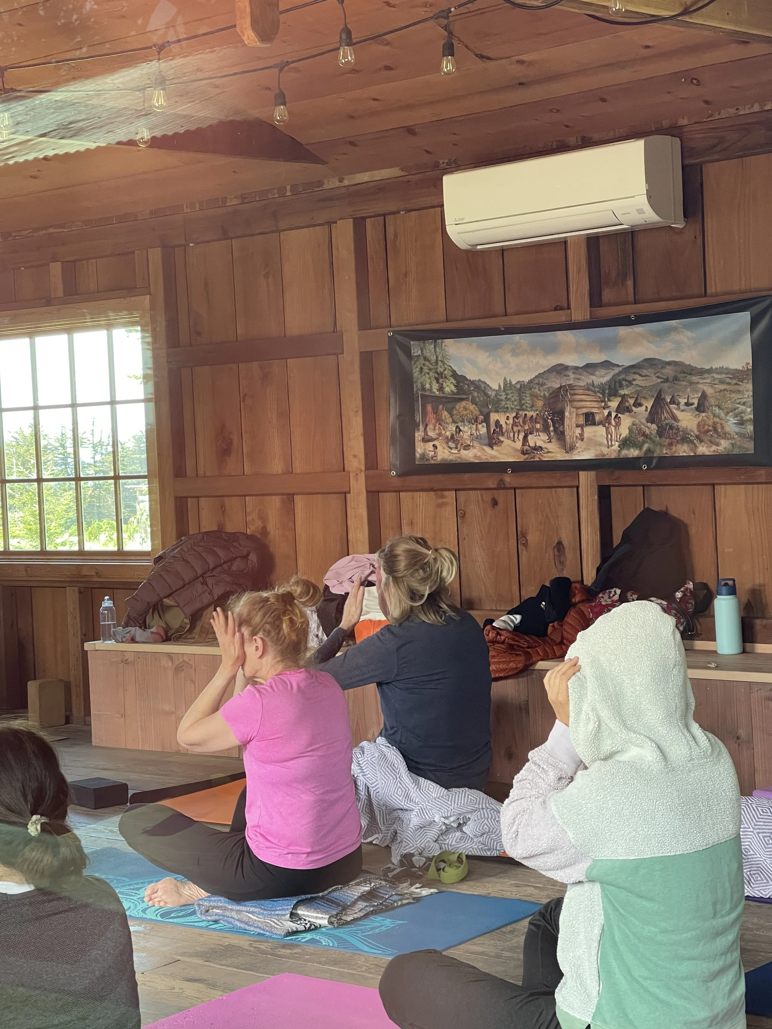 1:00-2:30pm Gentle afternoon yoga practice. A slower, restorative practice to relax, soften and integrate the day.